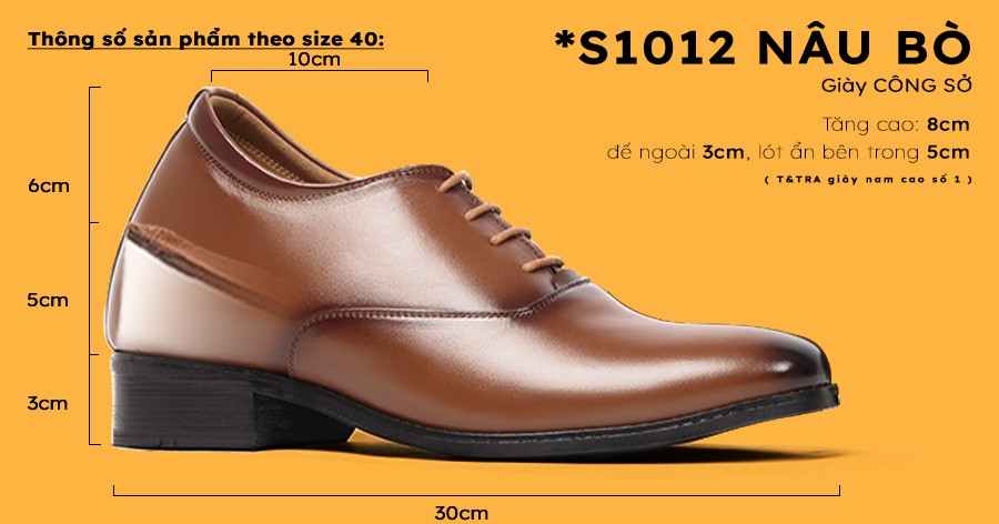 - Tăng cao 8cm: Đế ngoài 3cm, phần cao ẩn bên trong 5cm)