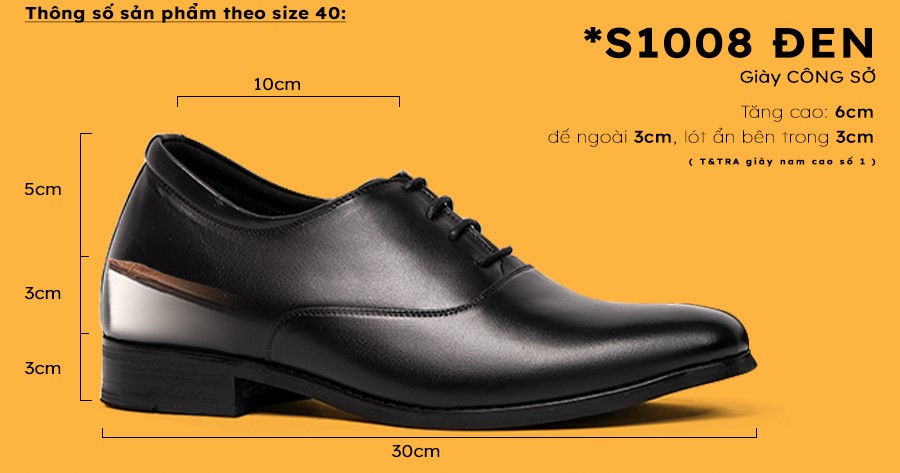 - Tăng cao 6cm: Đế ngoài 3cm, phần cao ẩn bên trong 3cm