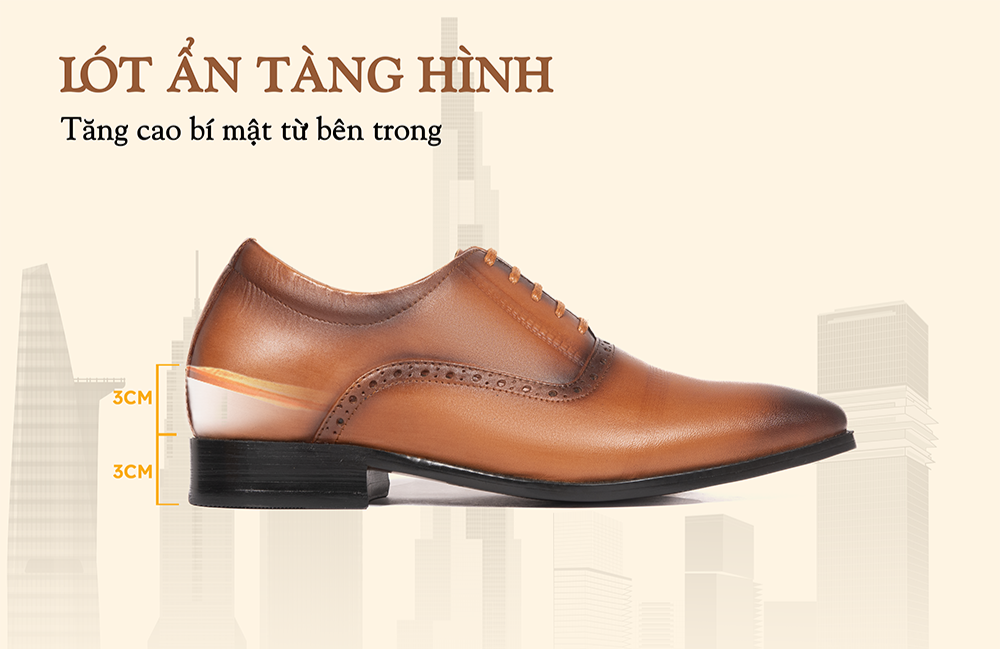 - Sản phẩm tích hợp tính năng tăng chiều cao kép gồm đế ngoài 3cm và lót ẩn 3cm, nâng tổng chiều cao lên đến 6cm
