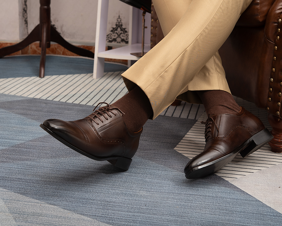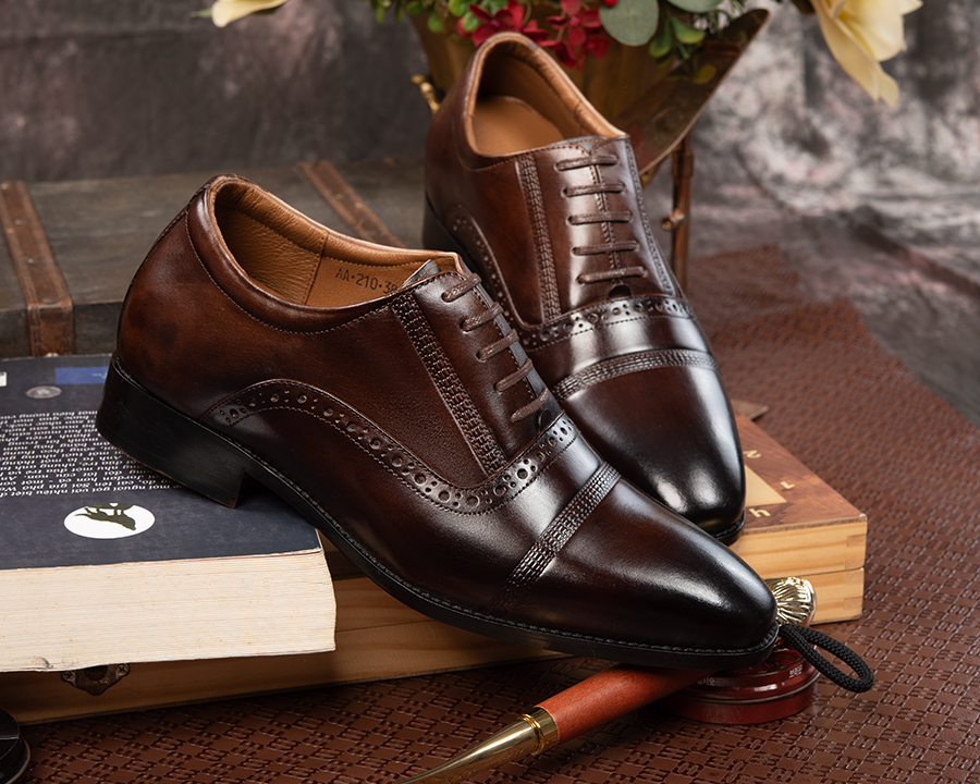 - Khi đi làm, với một đôi giày cao nam Oxford hay Derby đánh màu thủ công Patina dù đứng cạnh đồng nghiệp hay xã giao cùng đối tác, anh sẽ luôn phong độ, tự tin mà chẳng sợ bị lép vế.