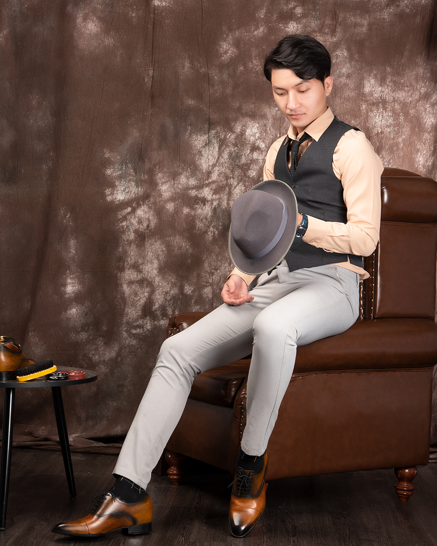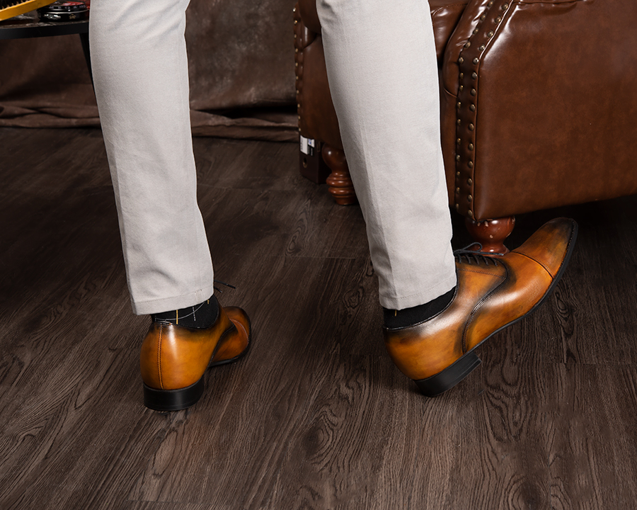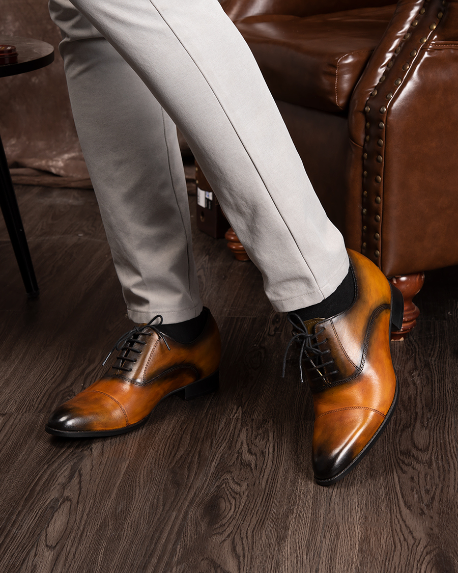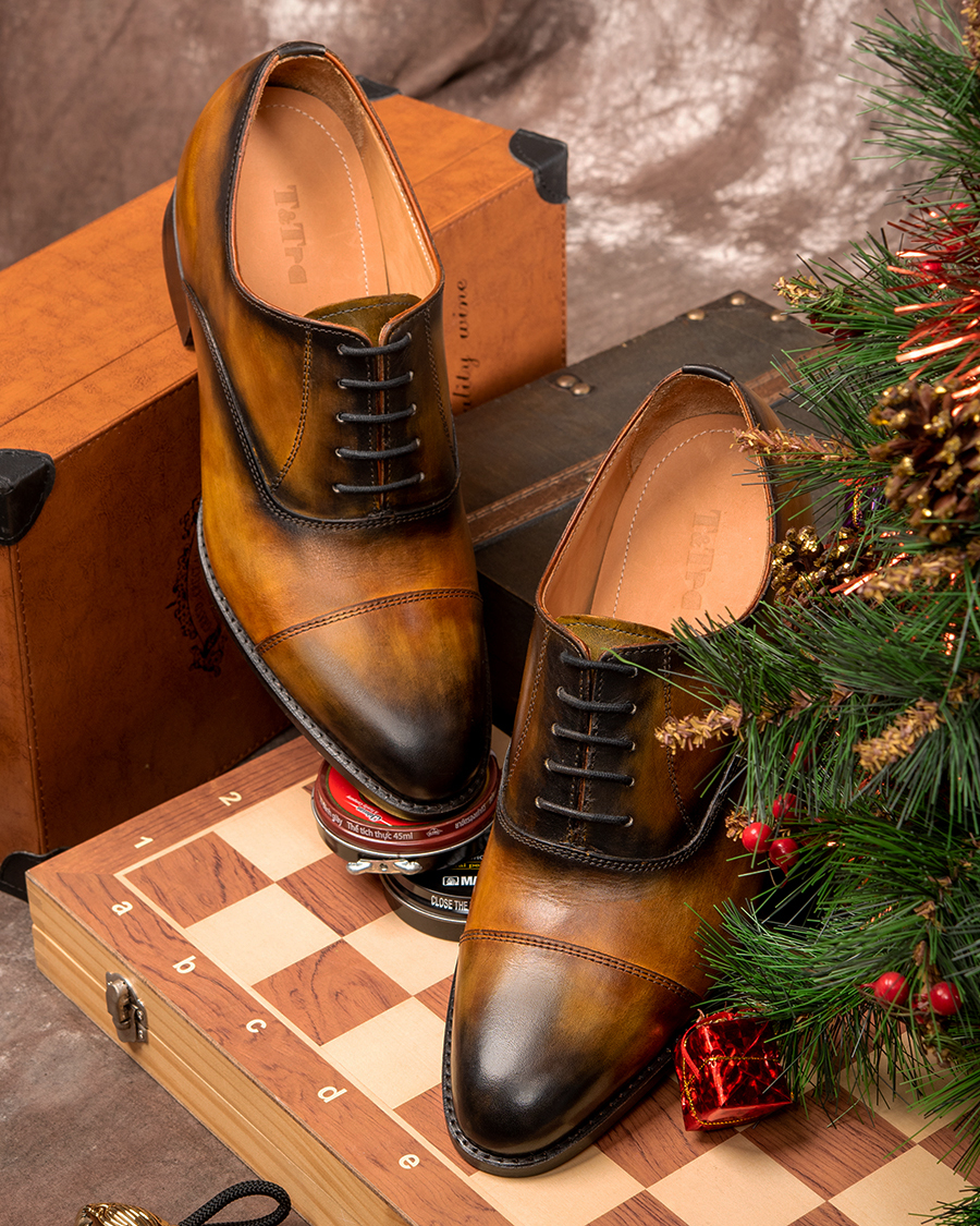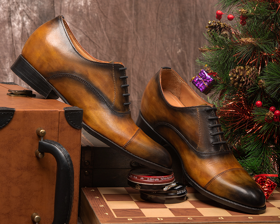 - Khi đi làm, với một đôi giày Oxford hay Derby đánh màu thủ công Patina dù đứng cạnh đồng nghiệp hay xã giao cùng đối tác, anh sẽ luôn phong độ, tự tin mà chẳng sợ bị lép vế.