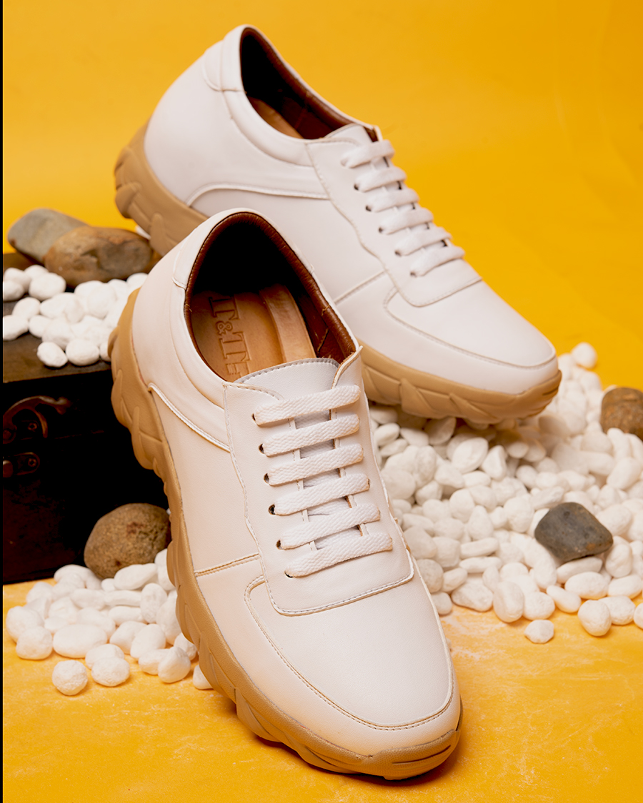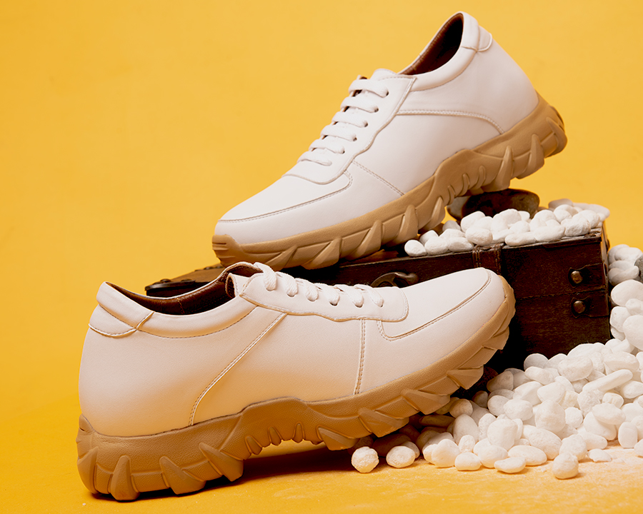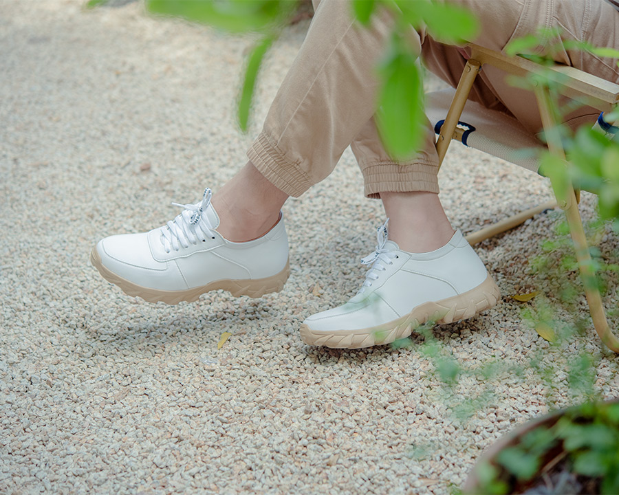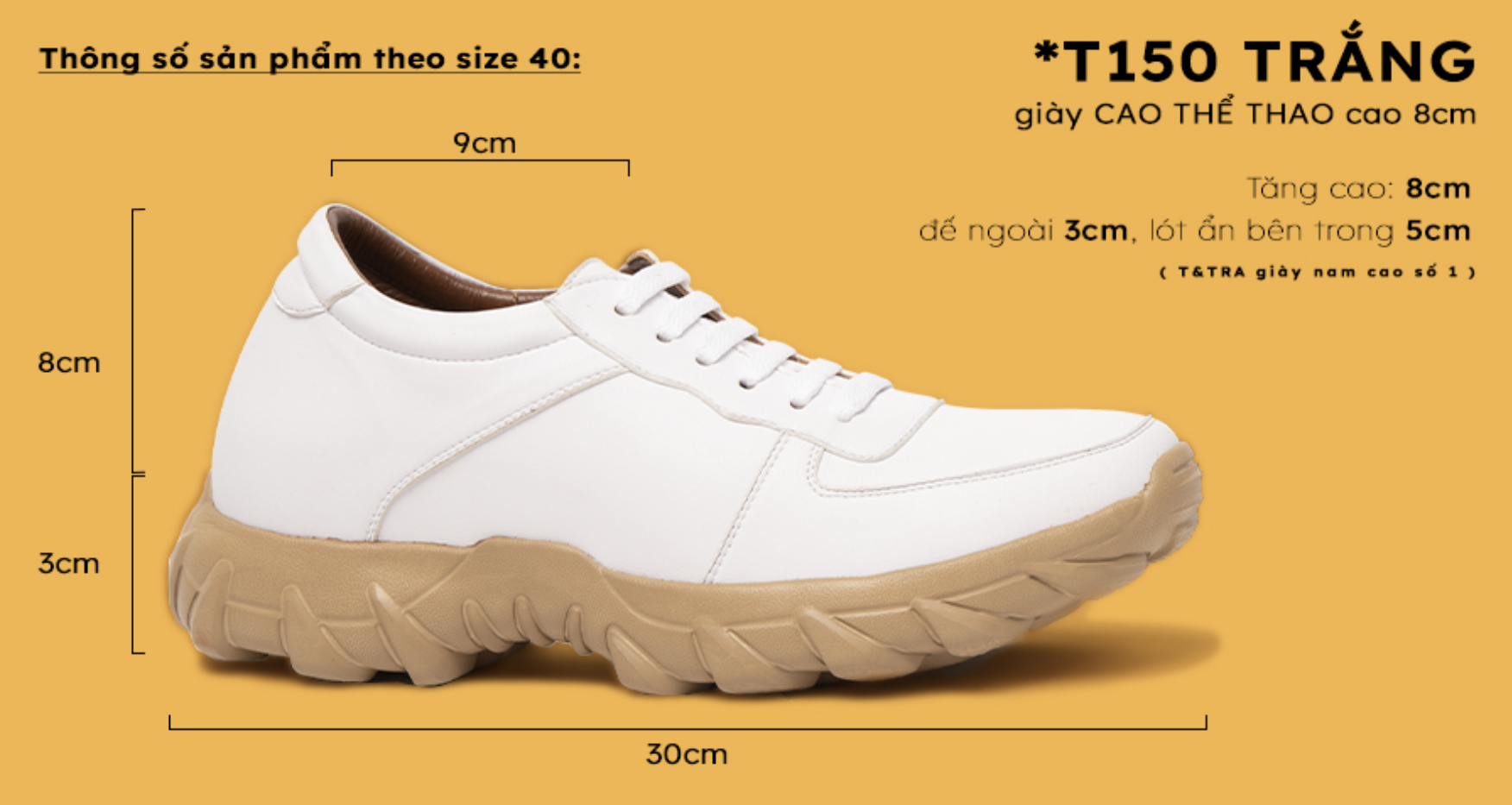 - Trọng lượng giày cao nam T150 Trắng nhẹ hơn 18% (so với dùng đế cao su) do dùng đế và lót tăng cao bằng vật liệu EVA.