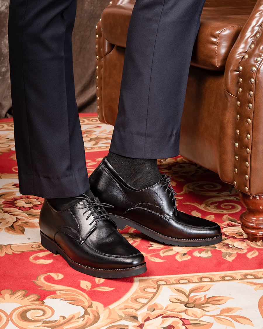 - Khi đi làm, với một đôi giày đế cao nam Oxford hay Derby đánh màu thủ công Patina dù đứng cạnh đồng nghiệp hay xã giao cùng đối tác, anh sẽ luôn phong độ, tự tin mà chẳng sợ bị lép vế.