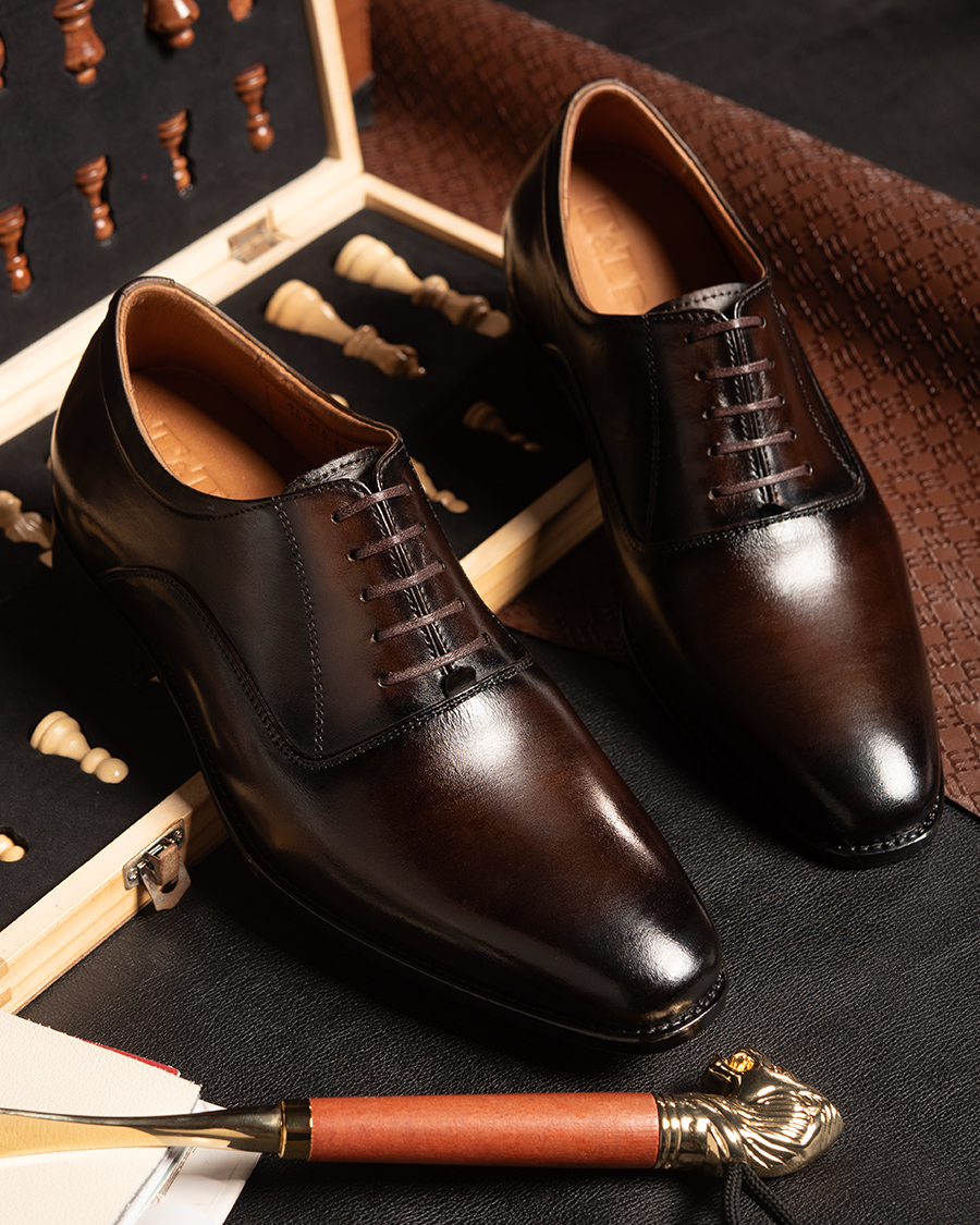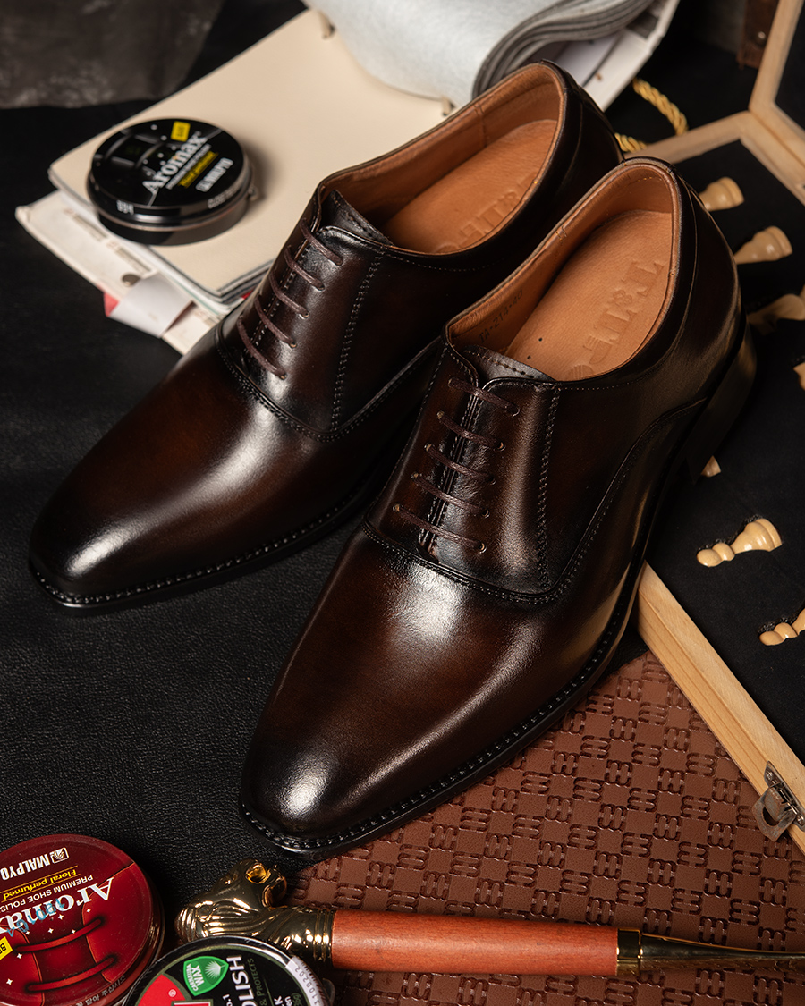 - Khi đi làm, với một đôi giày cao nam Oxford hay Derby đánh màu thủ công Patina dù đứng cạnh đồng nghiệp hay xã giao cùng đối tác, anh sẽ luôn phong độ, tự tin mà chẳng sợ bị lép vế.