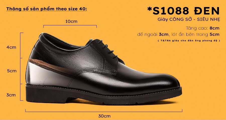 - Tăng cao 8cm: Đế ngoài 3cm, phần cao ẩn bên trong 5cm.