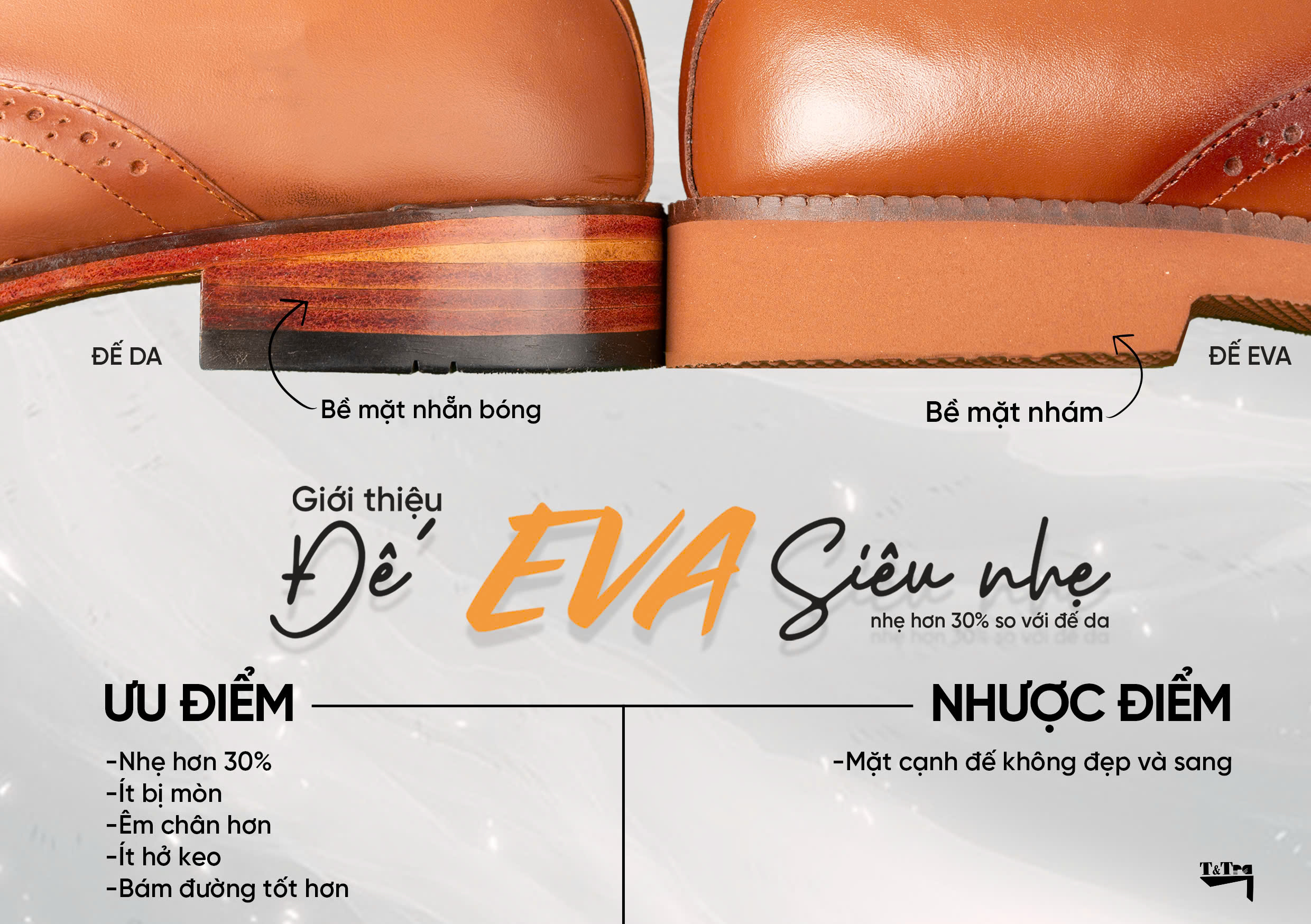 *So sánh ưu nhược điểm đế EVA so với giày đế da/đế pháp (cao su).