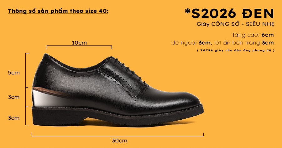 - Tăng cao 6cm: Đế ngoài 3cm, phần cao ẩn bên trong 3cm