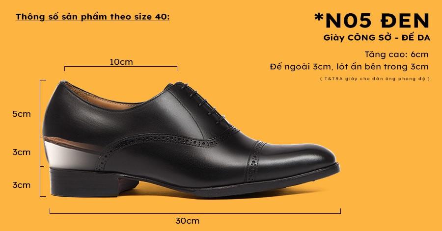 - Giày Tăng Chiều Cao Nam N05 Đen - Đế Da
