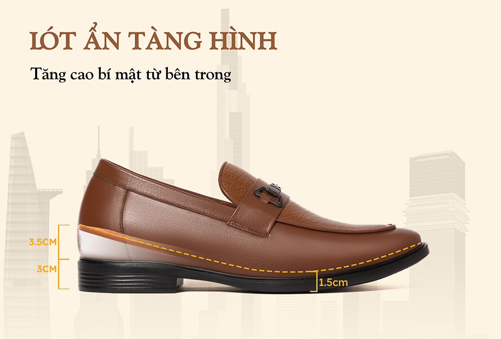 - Sản phẩm tích hợp tính năng tăng chiều cao kép gồm đế ngoài và phần lót ẩn bên trong: