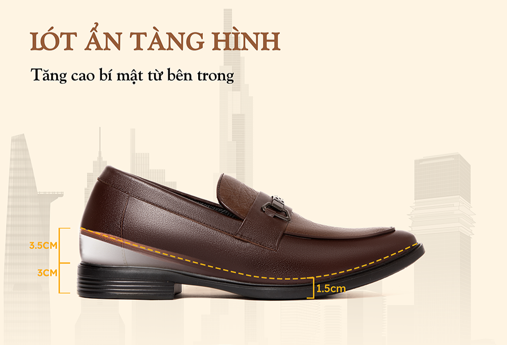 - Sản phẩm tích hợp tính năng tăng chiều cao kép gồm đế ngoài và phần lót ẩn bên trong: