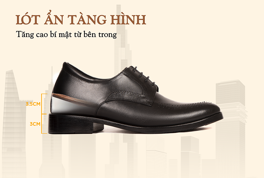 - Tăng cao 6.5cm: Đế ngoài 3cm phần cao ẩn bên trong 3.5cm.