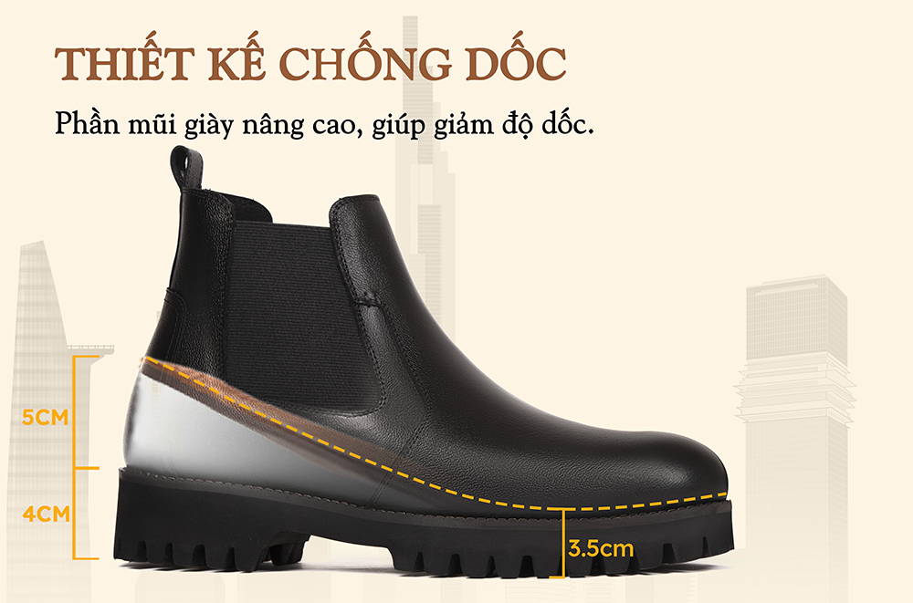+ Cao 9cm (đế ngoài 4cm và lót ẩn 5cm): độ dốc thấp, thích hợp với tần suất dùng mỗi ngày.