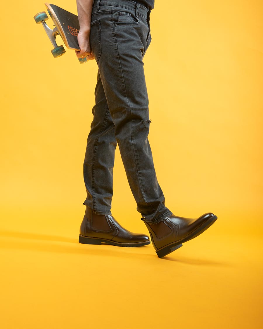 - Khi đi chơi cùng bạn bè, chỉ cần mang một đôi giày chelssea boots hợp mode thì dù diện bộ trang phục nào anh cũng sẽ thật thu hút và nổi bật trong đám bạn.