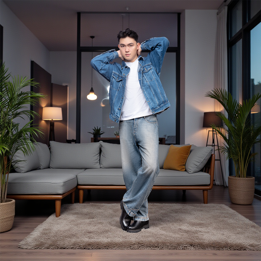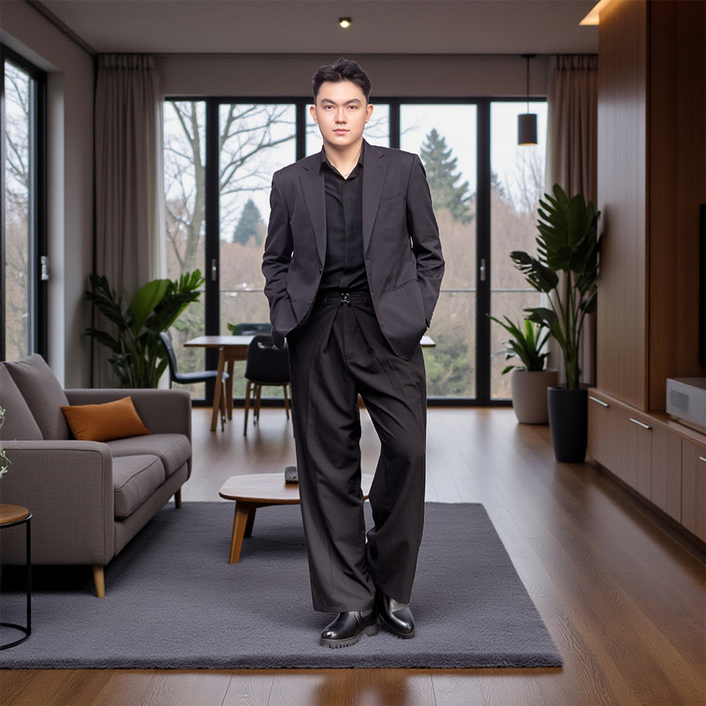 - Phối cùng quần ống rộng hơi phủ gót, chiều cao được tăng thêm nhưng vẫn giữ sự hài hòa và tinh tế.