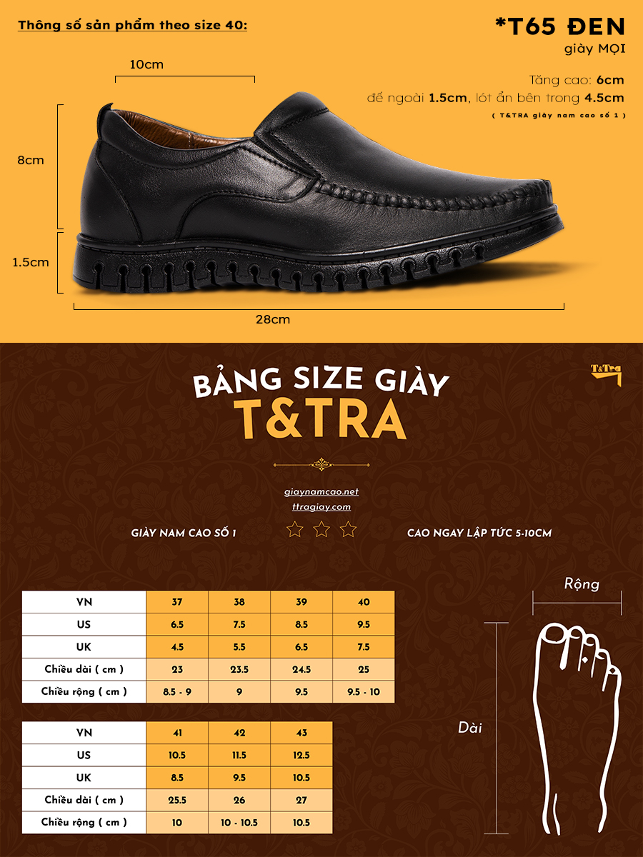 Giày cao nam T&TRA hân hạnh được phục vụ quý khách. Chúng tôi luôn luôn lắng nghe ý kiến đóng góp từ quý khách hàng để từ đó hoàn thiện tốt hơn. Sự tin tưởng của quý khách hàng là động lực phát triển của chúng tôi.