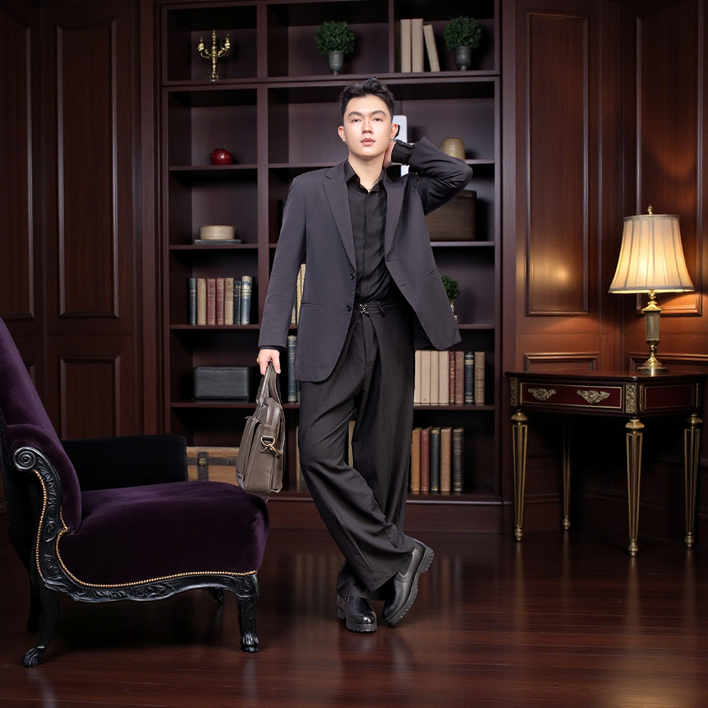 - Phối cùng quần ống rộng hơi phủ gót, chiều cao được tăng thêm nhưng vẫn giữ sự hài hòa và tinh tế.