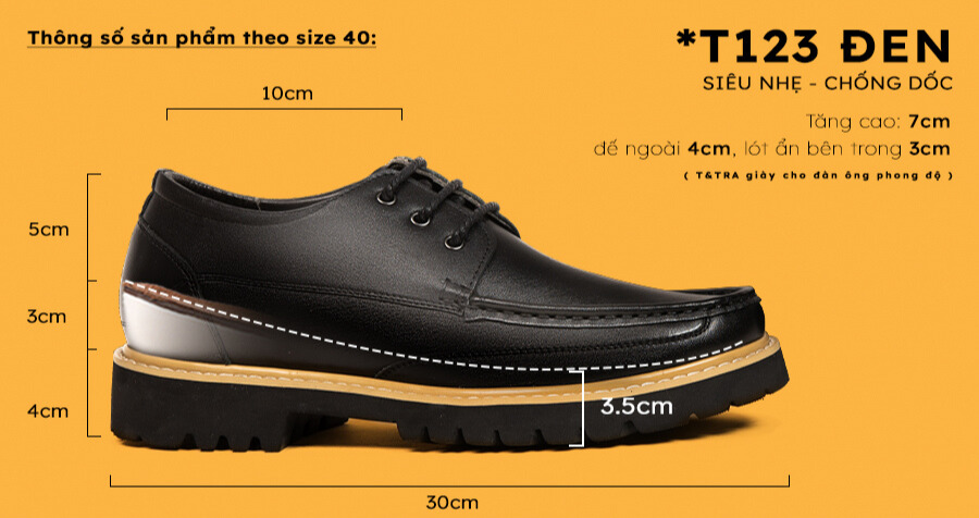 - Tăng cao 7cm: Đế ngoài 4cm, phần cao ẩn bên trong 3cm