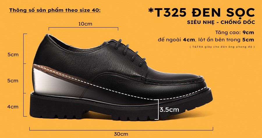 - Tăng cao 9cm: Đế ngoài 4cm, phần cao ẩn bên trong 5cm
