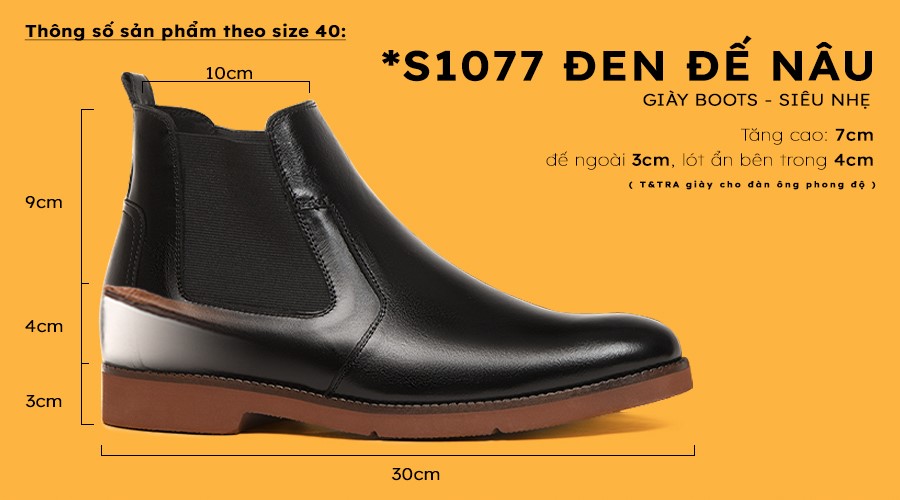 - Tăng cao 7cm: Đế ngoài 3cm, phần cao ẩn bên trong 4cm