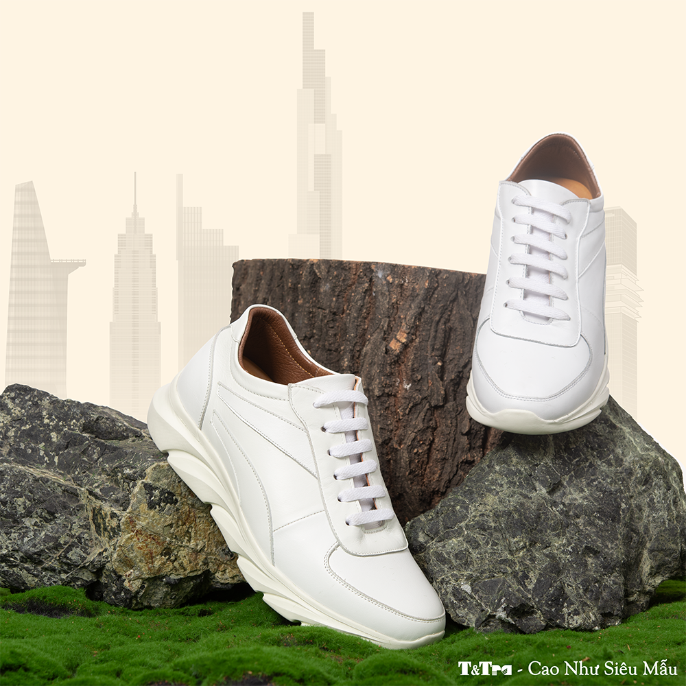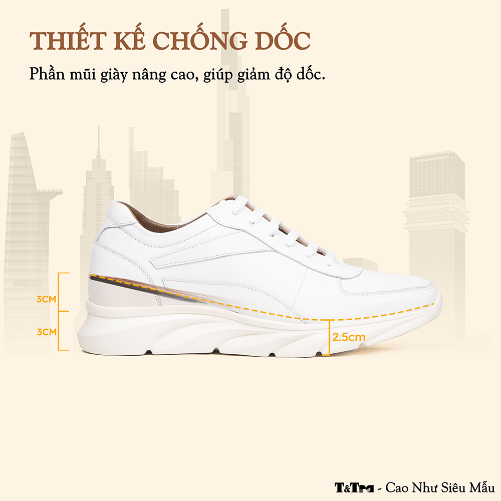 [6CM] Giày Đế Cao Nam T228 Trắng - Nhẹ Hơn và Ít Dốc Hơn