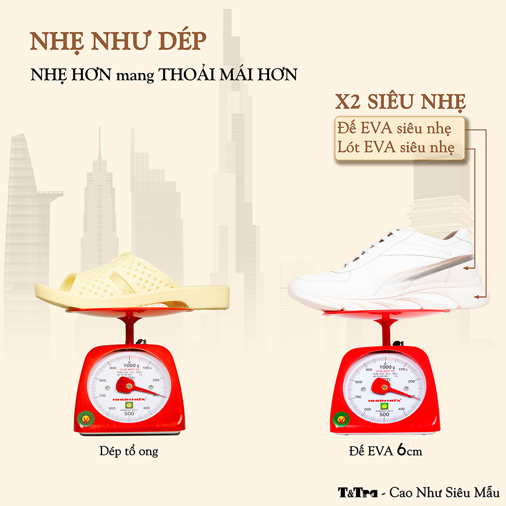 + Lót tăng chiều cao: EVA siêu nhẹ không hủy