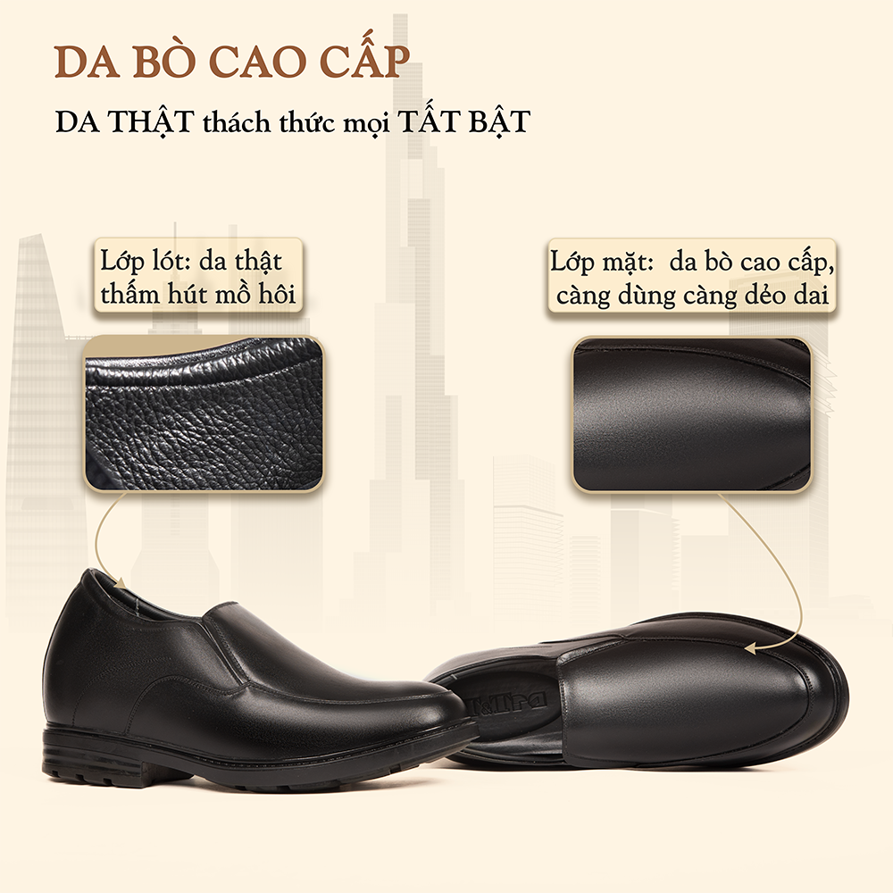 - Sản phẩm tích hợp tính năng tăng chiều cao kép gồm đế ngoài và phần lót ẩn bên trong với 2 phân loại chiều cao:
