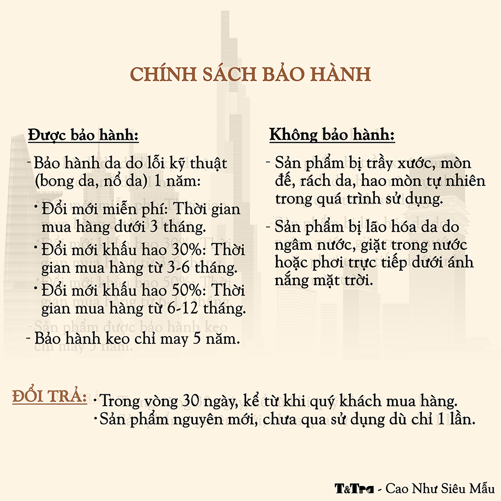 - Lớp da mặt: da bò cao cấp, độ dày 1.4 - 1.6mm, bền bỉ theo thời gian, càng dùng càng dẻo dai.