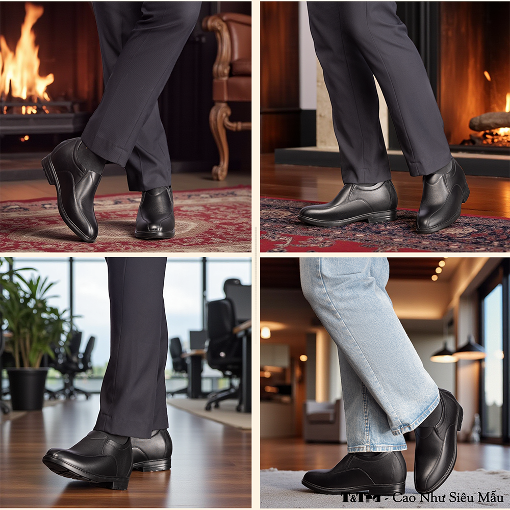 - Đi lại chúc rượu bạn bè cũng sẽ là một thủ tục bất thành văn. Lúc này, giày nam đế cao T&Tra sẽ là cứu tinh của anh, khi giày vừa đẹp, VỪA NHẸ (trọng lượng giảm 30% so với giày đế cao su), lại vừa êm chân.