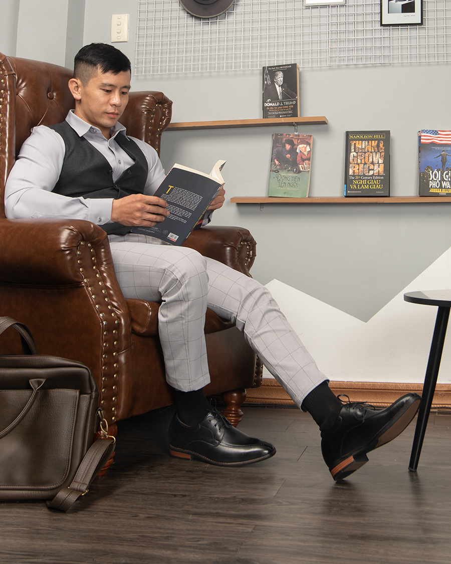 - Khi đi làm, với một đôi giày Oxford hay Derby đánh màu thủ công Patina dù đứng cạnh đồng nghiệp hay xã giao cùng đối tác, anh sẽ luôn phong độ, tự tin mà chẳng sợ bị lép vế.