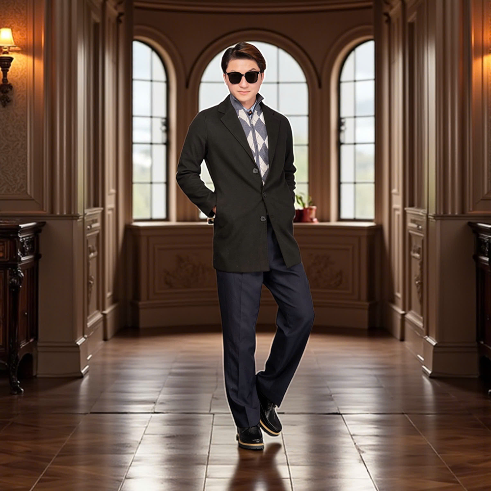 - Phối cùng quần ống rộng hơi phủ gót, chiều cao được tăng thêm nhưng vẫn giữ sự hài hòa và tinh tế.