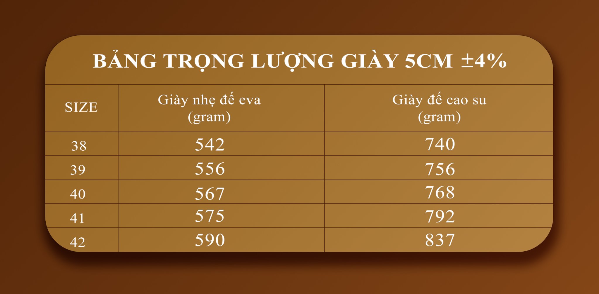 - Nếu so sánh trọng lượng so với giày đế cao su thì tham khảo bảng sau: