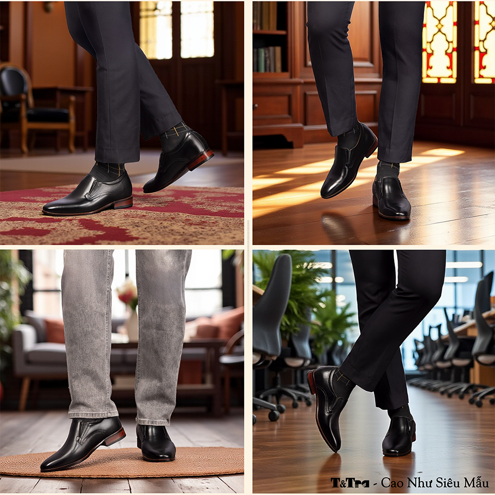 - Đi lại chúc rượu bạn bè cũng sẽ là một thủ tục bất thành văn. Lúc này, giày tăng chiều cao nam T&Tra sẽ là cứu tinh của anh, khi giày vừa đẹp, VỪA NHẸ (trọng lượng giảm 30% so với giày đế cao su), lại vừa êm chân.