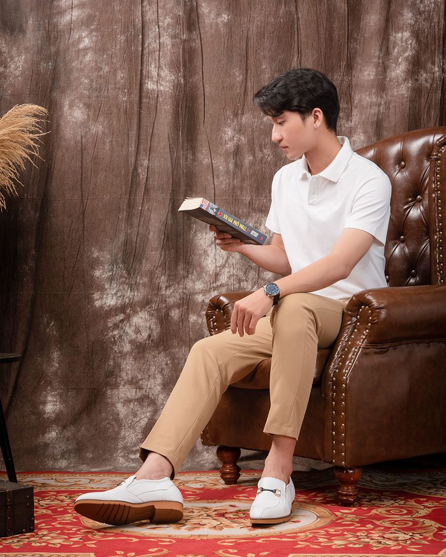 - Trọng lượng giày cao nam S1097 Trắng chỉ nặng khoảng 320gram/chiếc sẽ bằng với trọng lượng 1 chiếc dép do dùng đế và lót tăng cao bằng vật liệu siêu nhẹ EVA.