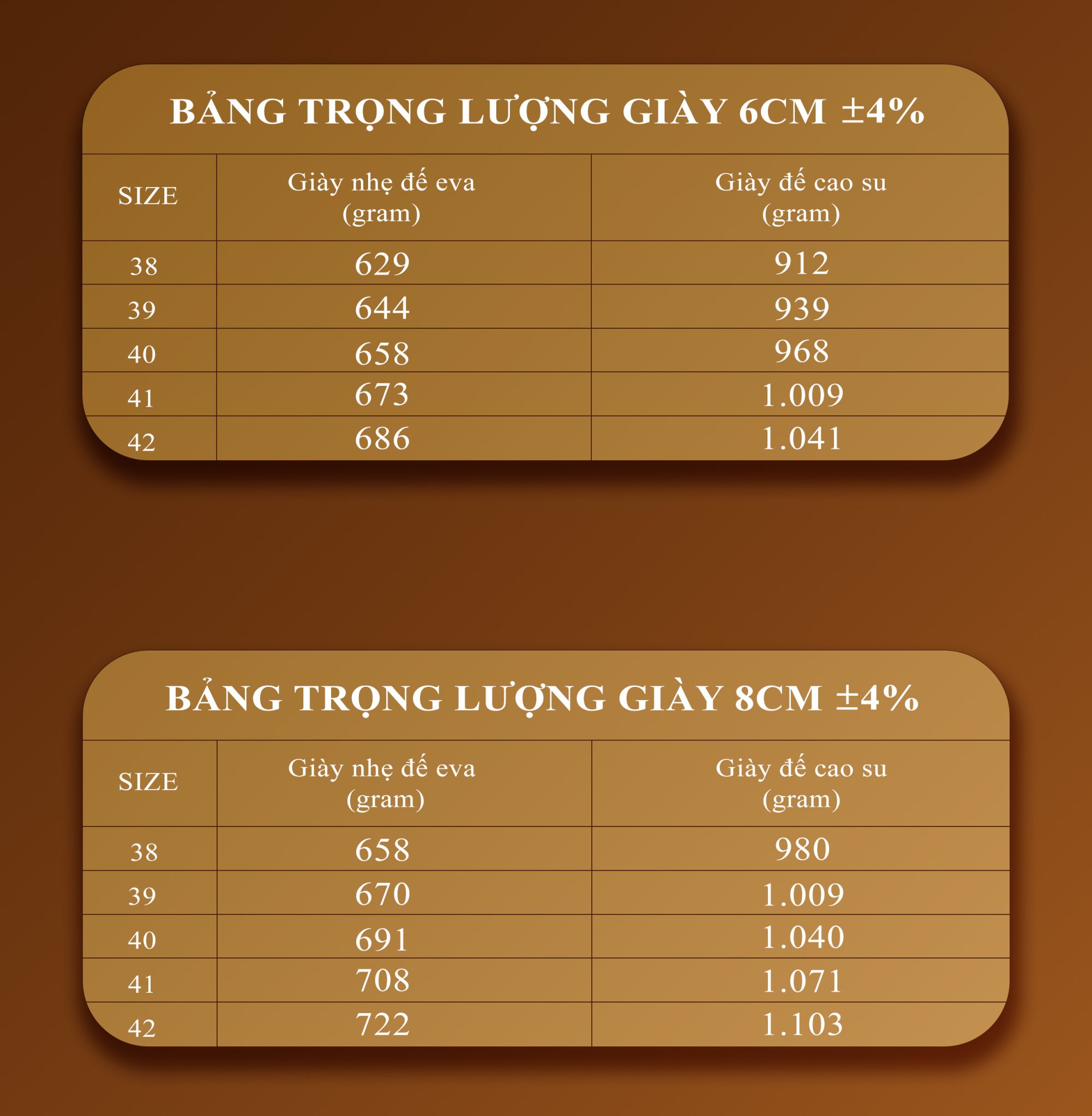 - Nếu so sánh trọng lượng so với giày đế cao su thì tham khảo bảng sau:
