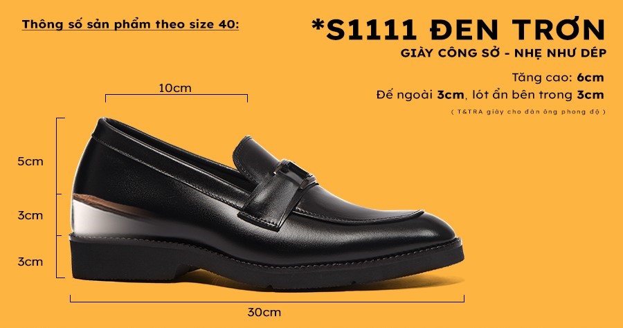- Tăng cao 6cm: Đế ngoài 3cm, phần cao ẩn bên trong 3cm