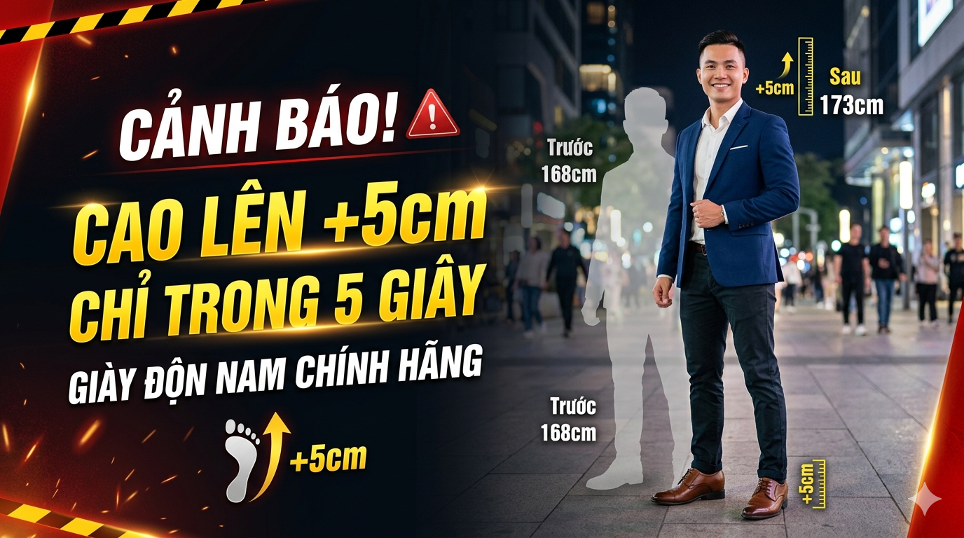 Coi chừng tăng lên 6cm chỉ trong 5s nhờ giày độn nam. Giày độn nam sẽ giúp bạn đều đó. Một đôi giày vừa siêu nhẹ, vừa tăng chiều cao, ngại gì mà không thử?