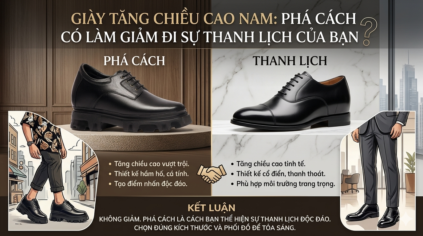 GIÀY TĂNG CHIỀU CAO NAM - PHÁ CÁCH CÓ LÀM GIẢM ĐI SỰ THANH LỊCH CỦA BẠN?