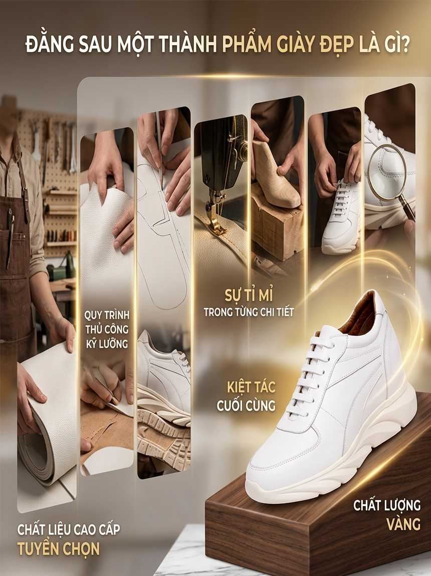 Đằng sau một kết quả tốt đẹp, là một quá trình miệt mài đầy cố gắng và nỗ lực. Và đương nhiên, về chuyện làm giày tăng chiều cao nam cũng không ngoại lệ.